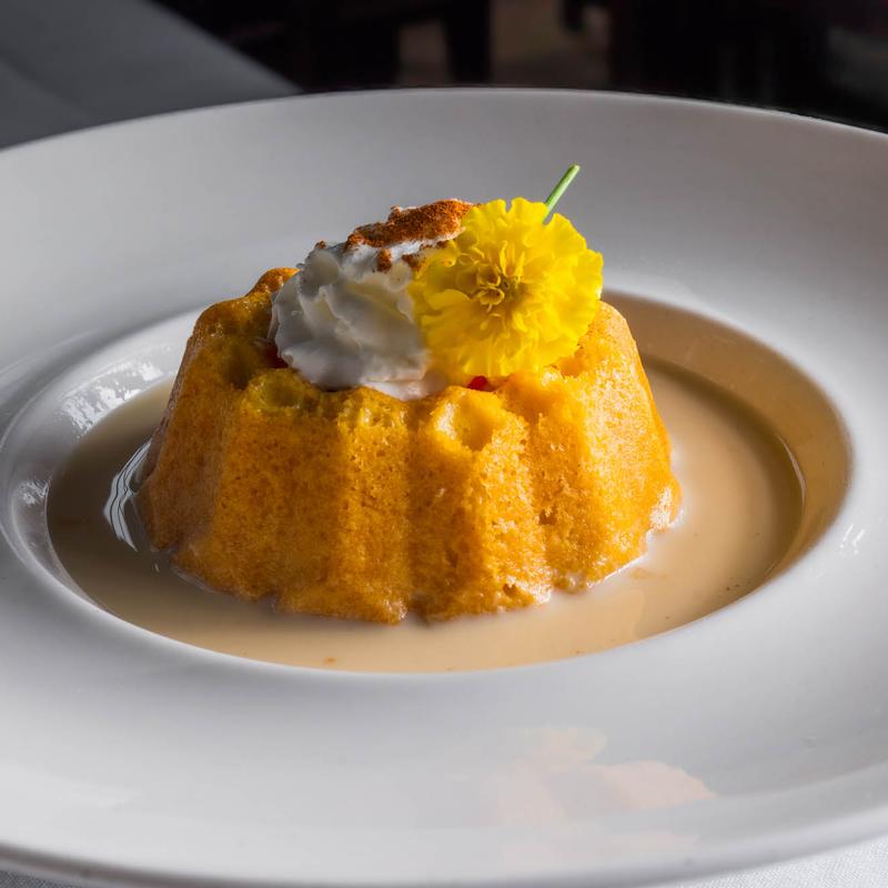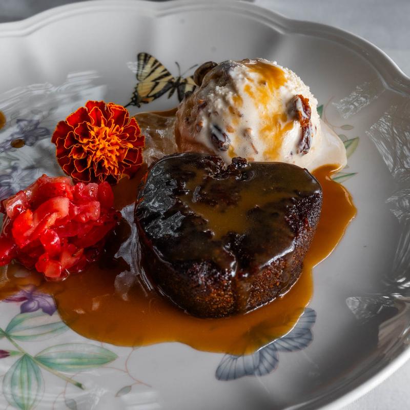 Chef Mayra's famous take on the British Caribbean dessert. Served with a scoop of rum raisin ice cream and warm toffee cream.